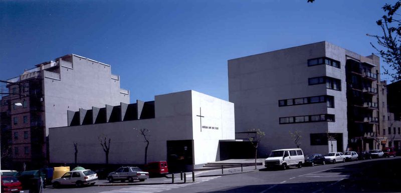 CONJUNTO PARROQUIAL EN ESQUINA FORMADO POR EDIFICIO DE 2 PLANTAS CON ESPACIO AL CULTO PARA 200 PERSONAS, AULAS Y DESPACHOS PARROQUIALES Y EDIFICIO DE 5 PLANTAS DESTINADO A DESPACHOS Y VIVIENDAS PARROQUIALES.